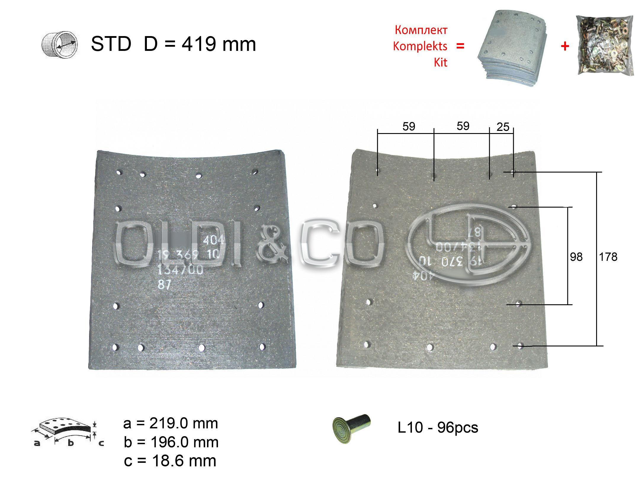 Quantity of rivets, pcs.: 96